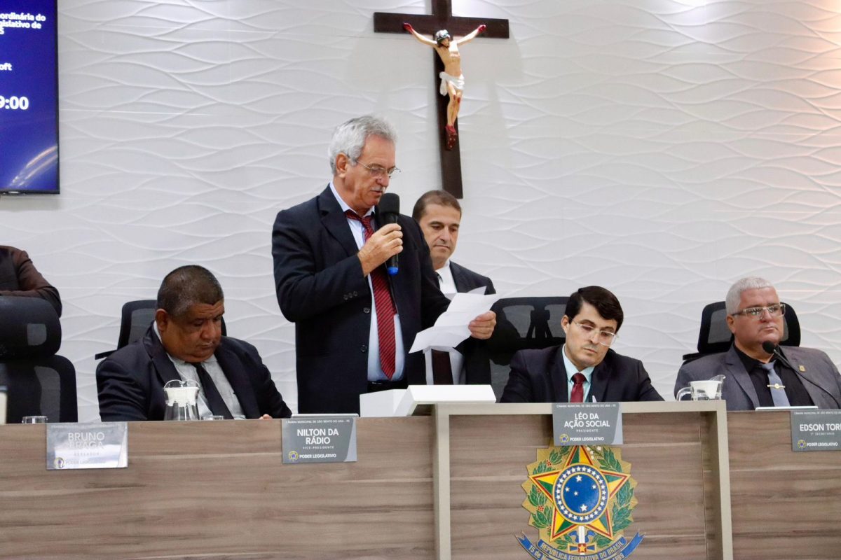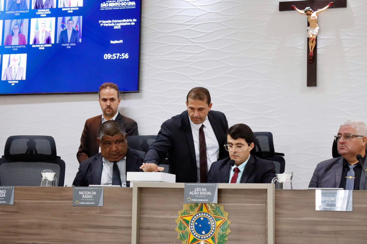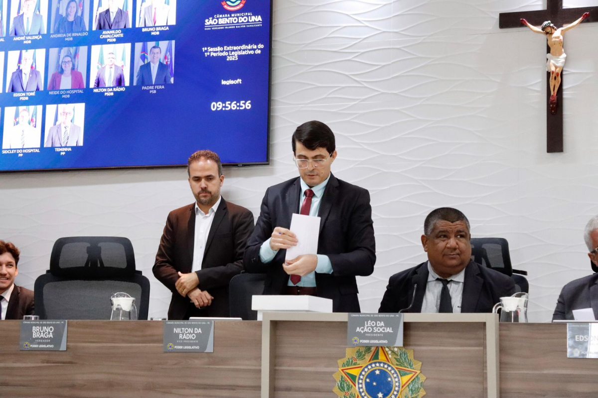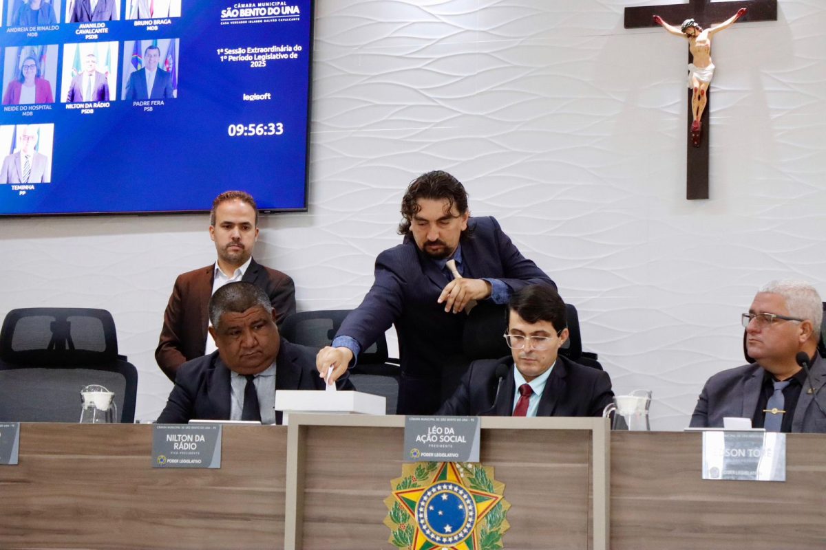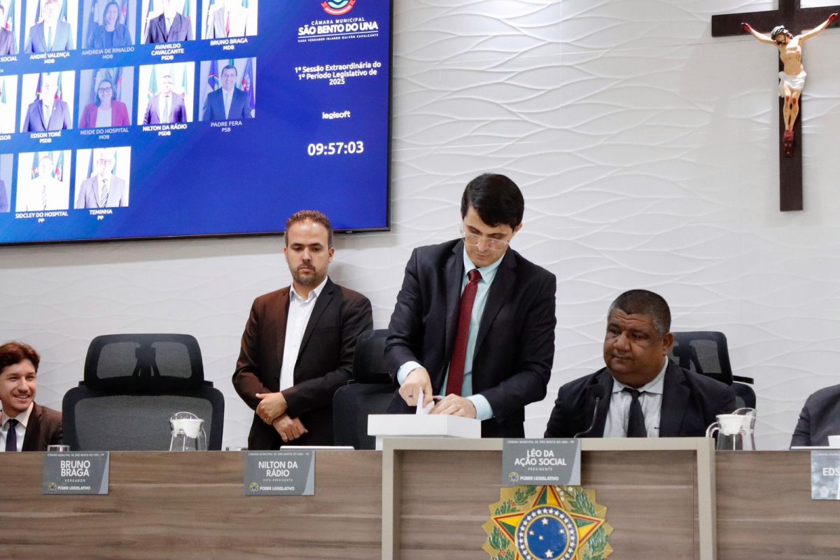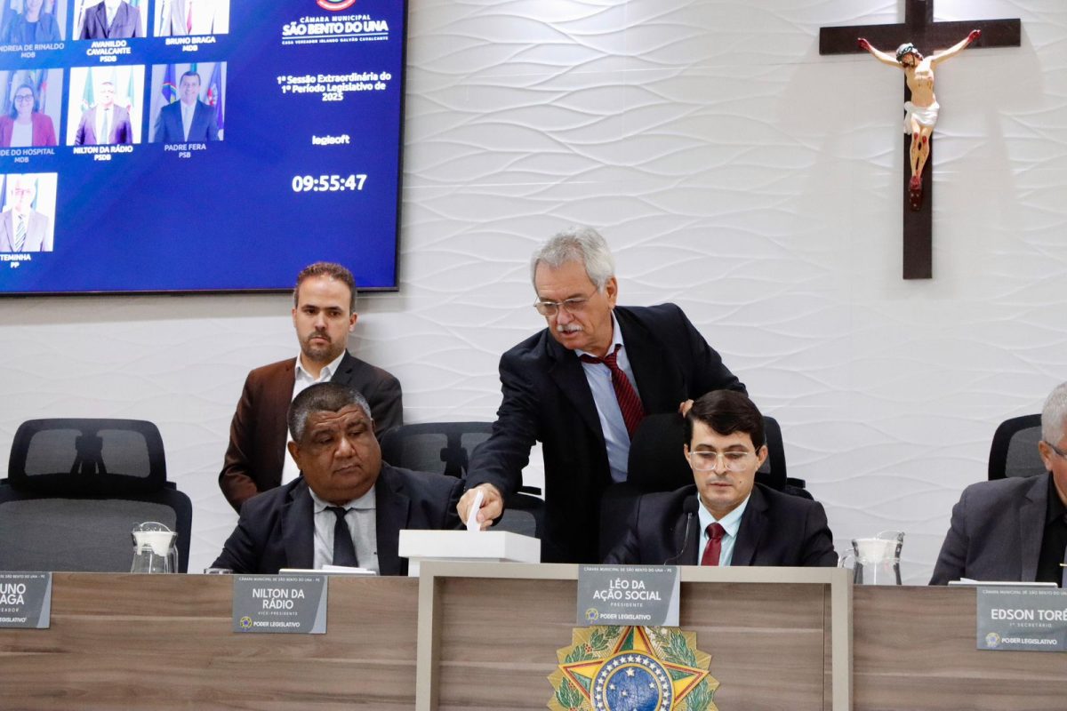 31 de maio de 2025São Bento do Una, 26 de maio de 2025 – Em Sessão Extraordinária realizada na manhã desta segunda-feira (26), a Câmara Municipal de São Bento do Una elegeu, por maioria simples, a Mesa Diretora que comandará os trabalhos legislativos no biênio 2027-2028.