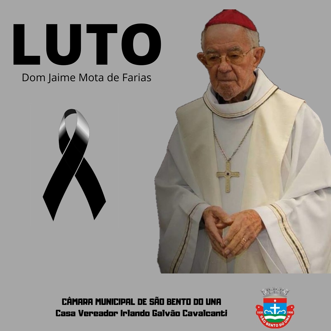 15 de abril de 2021A Câmara Municipal de São Bento do Una, Casa Vereador Irlando Galvão Cavalcanti, manifesta o mais profundo pesar pelo falecimento do Bispo Emérito de Alagoinhas/BA, Dom Jaime Mota de Farias.